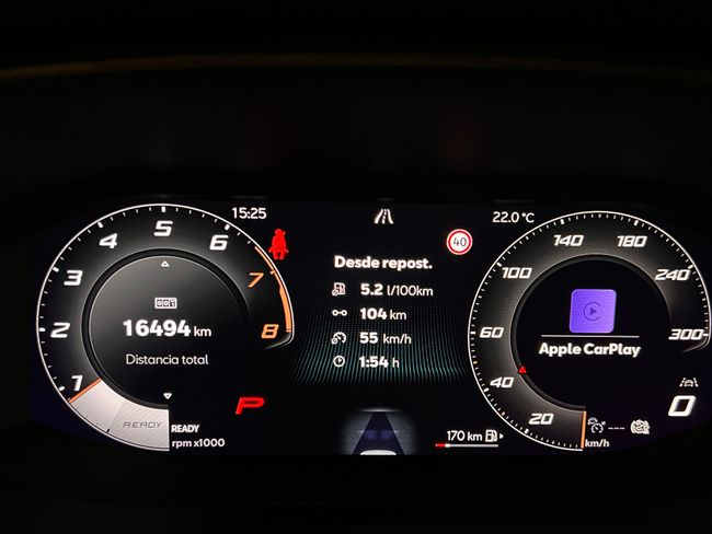 Equipamiento: Pantalla multifunción. Navi system. Volante deportivo y calefactable. Cámara trasera. Apple car play & Android auto inalámbrico. Enganche de remolque eléctrico original Cupra. Asistente de salida involuntaria de carril. Edge pack. Asistente de aparcamiento (aparca solo). Llantas de aluminio de 18". Luz interior envolvente. Faros full led. Asistente de frenada de emergencia. Levas para el cambio en el volante. Cargador para móvil inalámbrico. Reconocimiento de señales de tráfico. Control de velocidad adaptativo. Sistema de entrada y arranque sin llave. Asistente de arranque en pendiente. Control por voz. Sensores de aparcamiento delanteros y traseros. Telefonía bluetooth original con reproductor de música inalámbrico. Climatizador de 3 zonas con regulación independiente para las plazas traseras. Reposabrazos. Luces automáticas y sensor de lluvia. Espejos plegables eléctricos. Volante multifunción. Entrada usb. Etc...