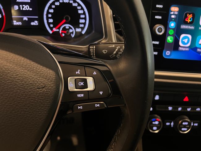 Equipamiento: Paquete deportivo R-LINE. Pantalla táctil multifunción. Volante deportivo multifuncional achatado por la parte central. Cámara trasera. Apple car play & Android auto inalámbrico. Asistente de salida involuntaria de carril. Llantas de aluminio. Luces diurnas led. Control de velocidad adaptativo con función de frenado. Control por voz. Sensores de aparcamiento delanteros y traseros. Telefonía bluetooth original con reproductor de música inalámbrico. Cristales traseros oscurecidos. Climatizador digital bi-zona. Reposabrazos. Asientos deportivos. Luces automáticas y sensor de lluvia. Espejos plegables eléctricos y calefactables. Entrada usb. Espejo retrovisor interior fotosensible. Etc...