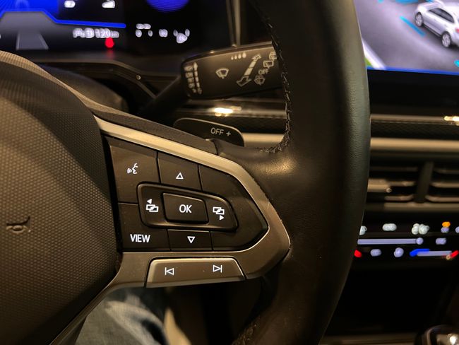 Equipamiento: Apple car play & Android auto inalámbrico. Pantalla táctil multifunción. Volante deportivo multifuncional achatado por la parte central con levas para el cambio Dsg. Asistente de salida involuntaria de carril. Control de velocidad adaptativo con función de frenado. Sensores de aparcamiento delanteros y traseros. Llantas de aluminio. Telefonía bluetooth original con reproductor de música inalámbrico. Climatizador digital bi-zona. Reposabrazos. Luces automáticas y sensor de lluvia. Espejos plegables eléctricos y calefactables. Entrada usb. Espejo retrovisor interior fotosensible. Etc...